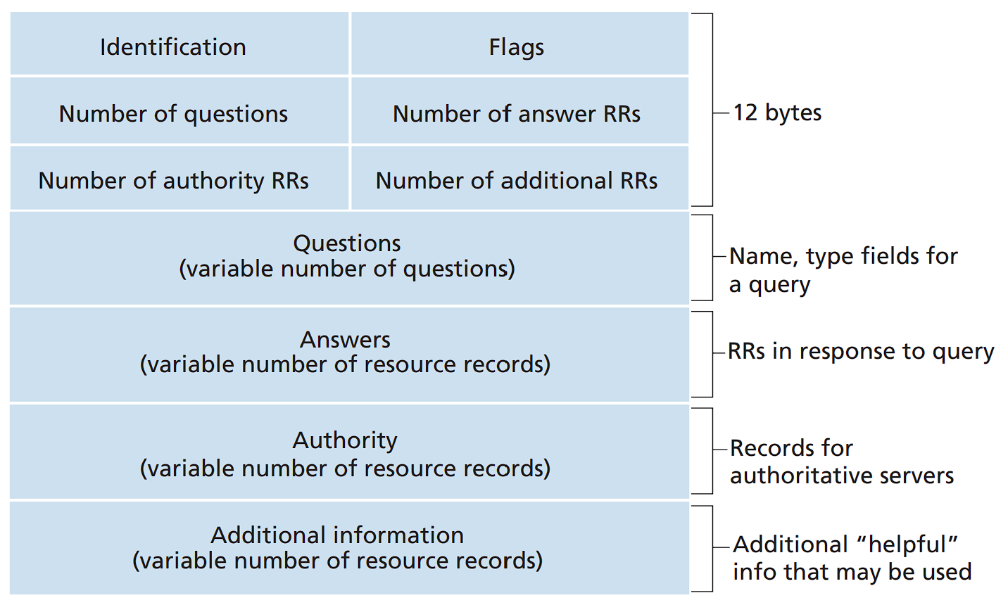 - 1 位 authoritative flag,标记此回复消息是否来自被查询域名的权威服务器