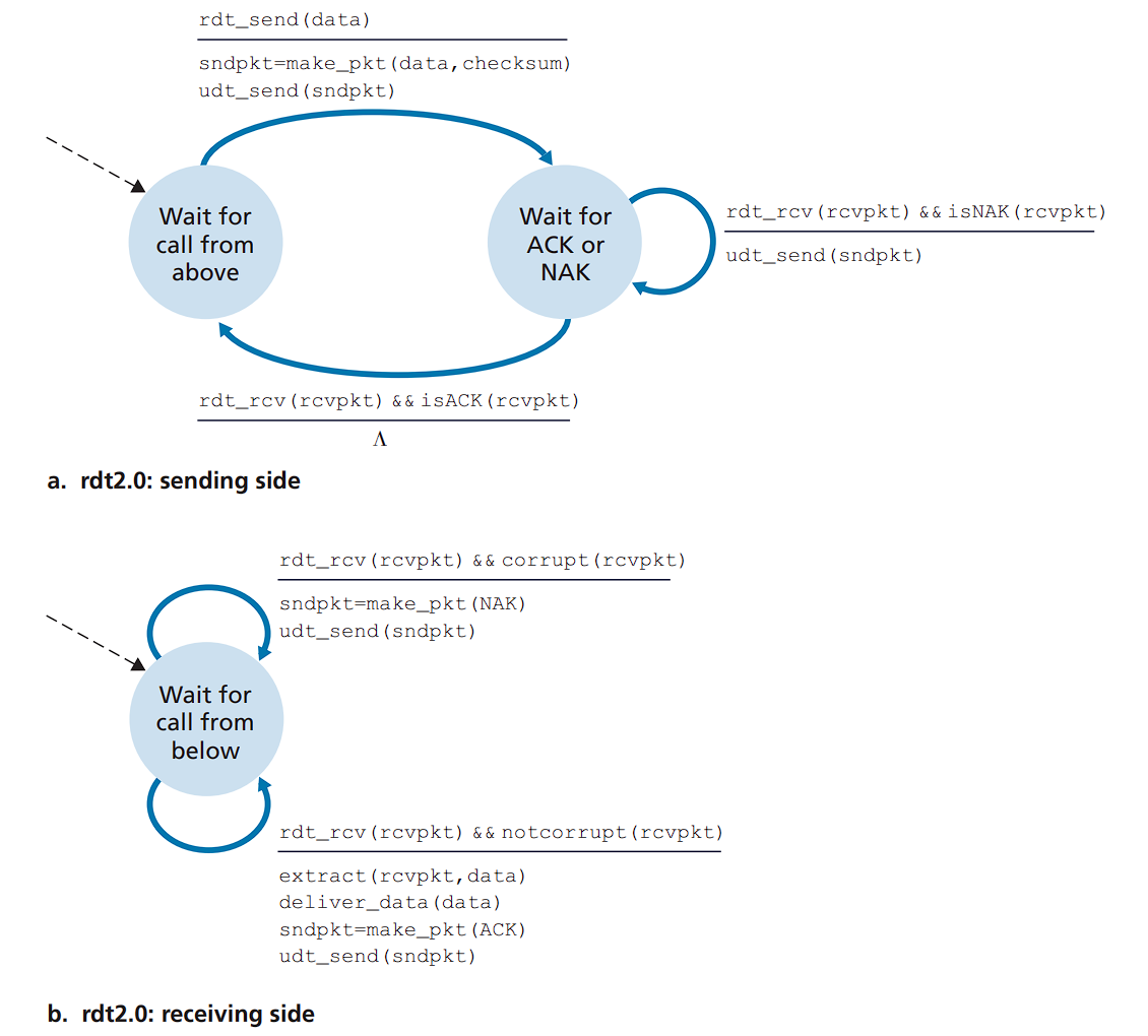 rdt 2.0:可能发生位错误的信道
